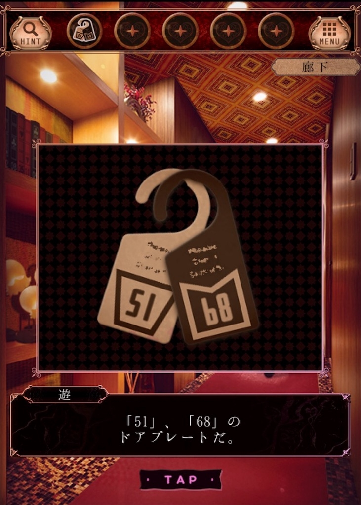 そして廊下の床から2枚の「51」「68」の「ドアプレート」をゲットできる。
