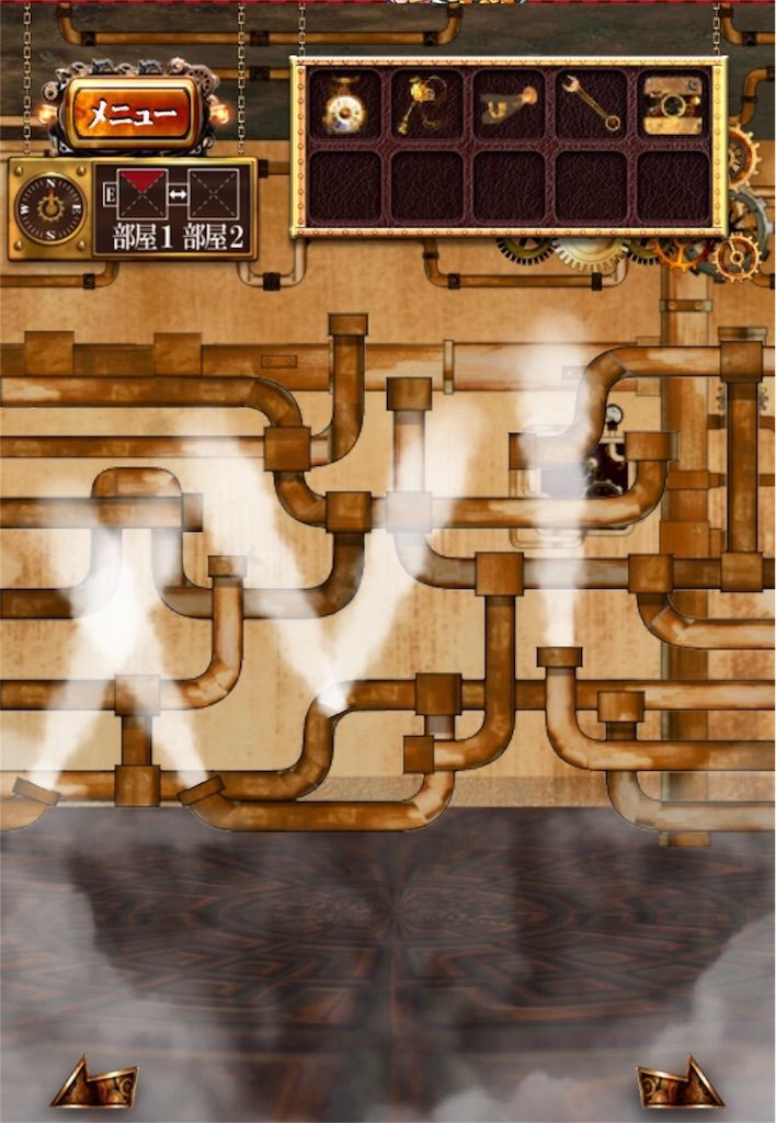 ここは”部屋1”に下の画像のように歯車がありますがモノ凄い速さで回転しているので”部屋2”に行きましょう。