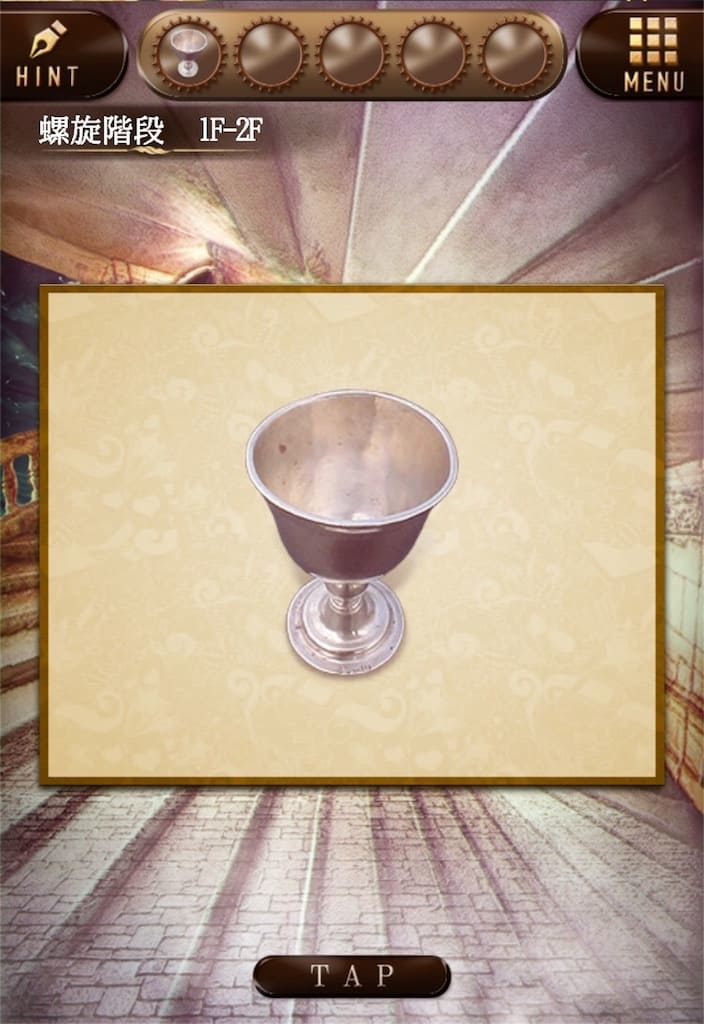 まず、”螺旋階段”の汚れた階段で「歯車」をゲットしましょう。